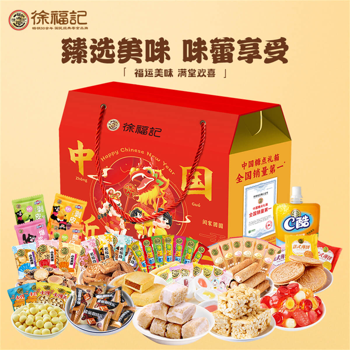中國新年 發布時間:2025-01-04點擊:51 團購優惠請聯系我們 內容物:1:徐福記酥心糖150克2:徐福記沙琪瑪418克3:徐福記新年什錦糖120克4:100%果汁軟糖120克5:米格瑪110克6:徐福記鳳梨酥200克7:雀巢咖啡樂(罐裝)92g8:徐福記棉花糖192克9:CD酷果凍110g*1袋10:徐福記綜合餅點200克*2袋(小丸煎餅、巖板燒、京屋果子、卷心酥、法式薄餅等) 請填寫您的信息 提交留言